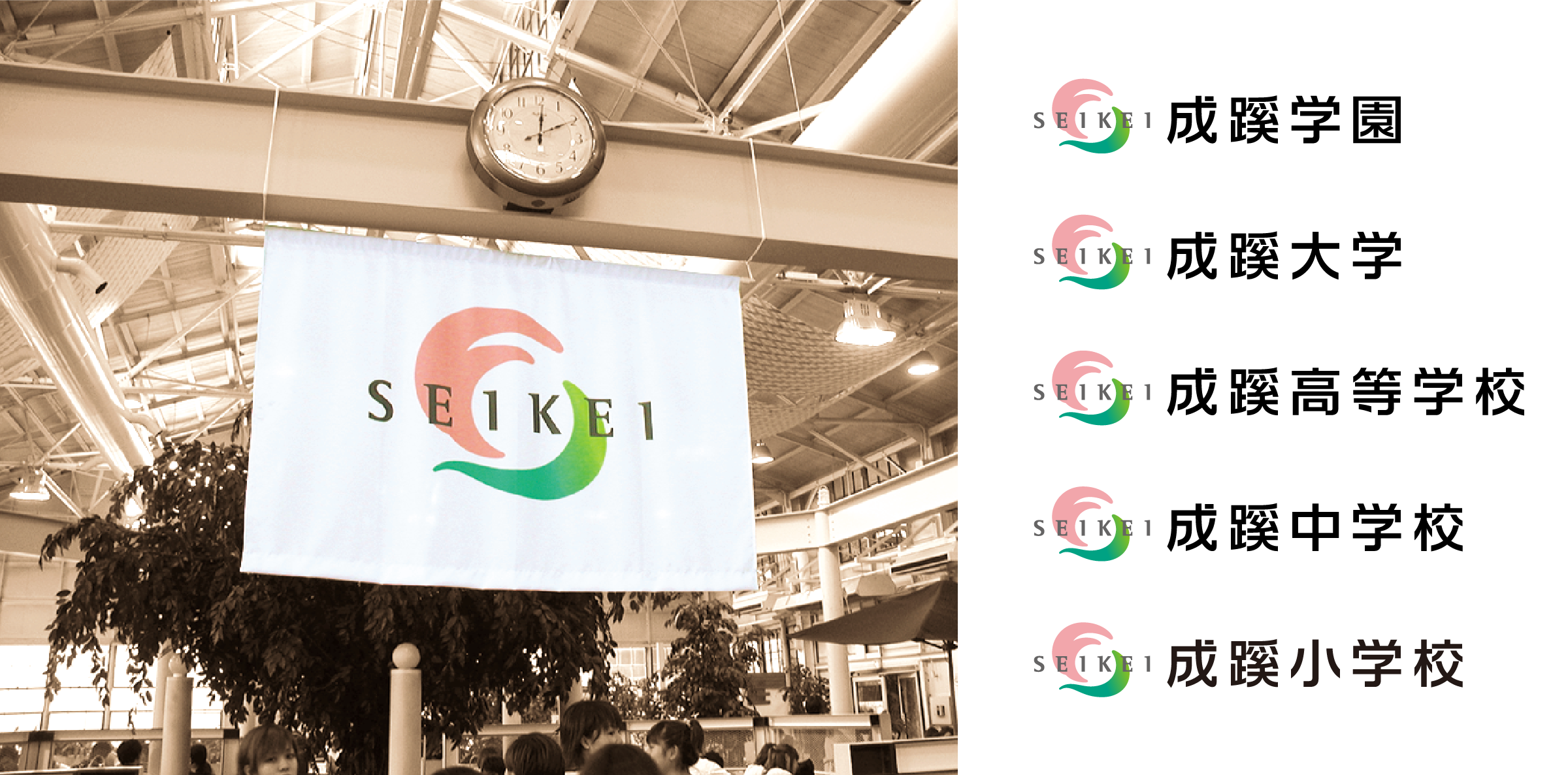 The name of the Seikei Gakuen schools and university has its origin in a proverb that likens a virtuous person to a peach tree whose beauty naturally attracts people to it. As such, the peach image had already existed as a symbol for the school. Using this peach as a motif, we developed a new symbol to stand for the overall Gakuen brand and introduced them to a variety of media. The symbol has now become the focus for the establishment of the new Seikei Gakuen image. We also designed the school’s 100th anniversary commemoration logo.