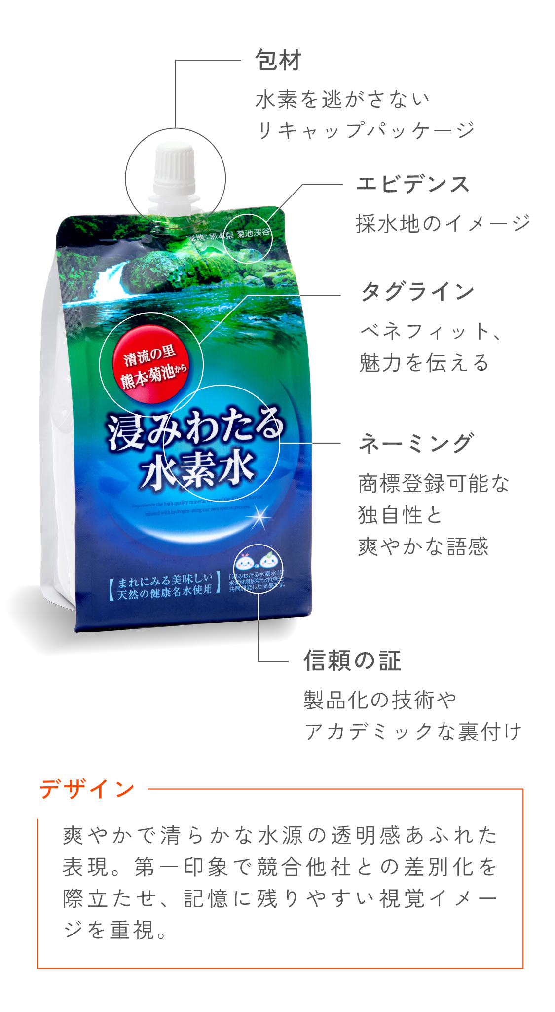 水素水という独自性の強い製品のネーミングとイメージの開発。